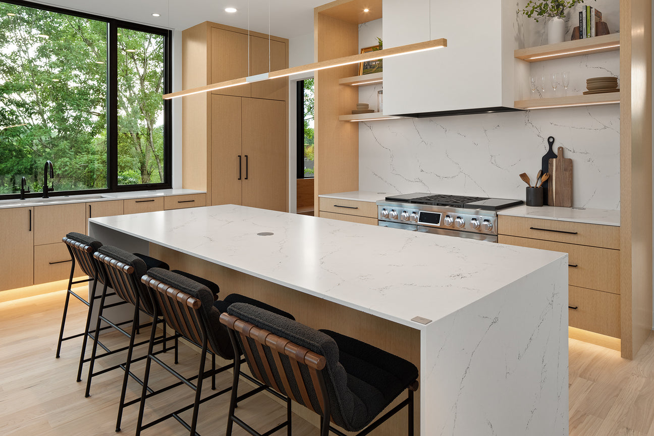 The quartz countertops and surfaces create rooms that are special places–where loved ones gather, where glorious meals are prepared, where the worries of the day are washed away. That’s why the superior performance of quartz–its strength and durability, its ease of cleaning, its resistance to moisture–plus it's stain, chip, and scratch resistant, and food safe.