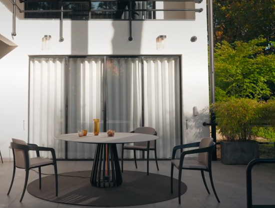 The Furniz Table, also designed by Kris Van Puyvelde, redefines outdoor living with its blend of elegant design and functional innovation. Featuring a base with an integrated heating element, this table extends the warmth of summer into cooler months, offering a seamless transition between seasons.