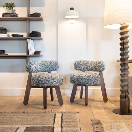 A small frame with mighty comfort! Our Gaston dining chair features an exposed wood base, upholstered seat, and back.