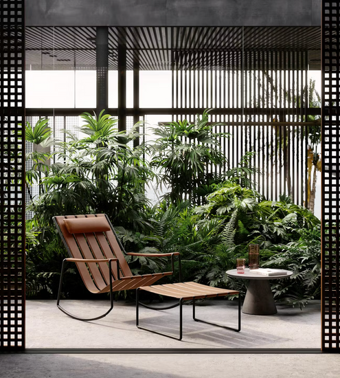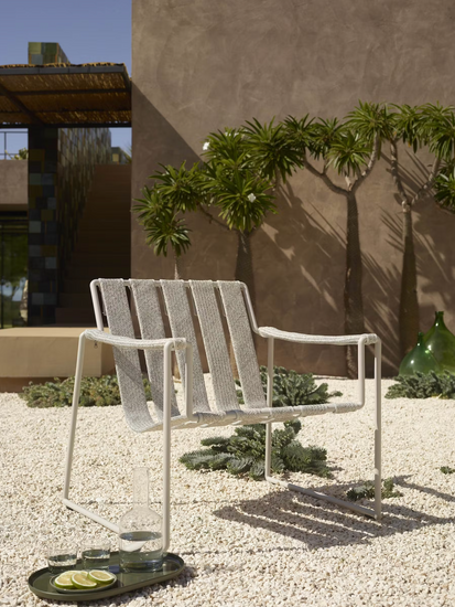 The Strappy's design allows for quick and easy removal of the upholstery for cleaning or storage, offering practical versatility alongside aesthetic appeal. With the option to change upholstery colors seasonally from a selection of over 70 colors and textures, including three robust imitation leathers in black, cognac, and taupe, the Strappy transcends traditional outdoor furniture boundaries, beautifully blurring the lines between indoor and outdoor spaces.