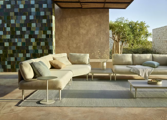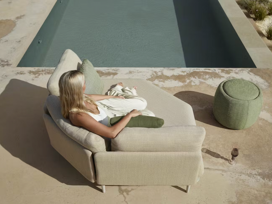 The Styletto Lounge offers a sophisticated blend of style and functionality. This elegant range features modular pieces designed for adaptability, including teak or ceramic topped tables with tapered legs and plush deeper seating options.